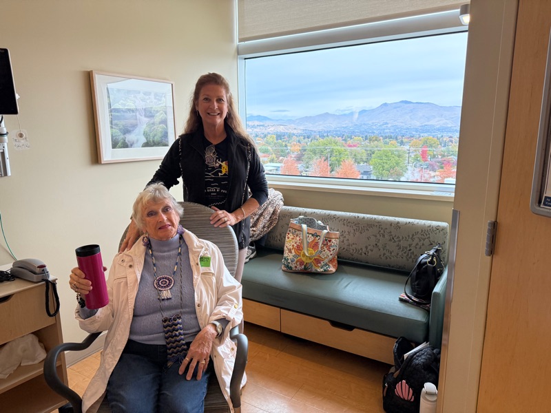 Me and my mom. We had a great view from that 4th floor window. We could see Wenatchee HS and also helicopters 🚁 coming in during our 8 days at the hospital.