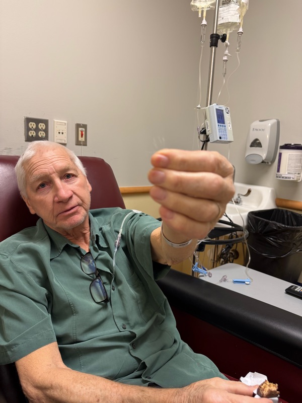 We met with oncologist, Dr Voshtina yesterday and she was willing to postpone/delay this round until after Christmas or lower the dose by 15% and better manage side effects, in lieu of stopping treatment altogether. After a few tears (mine), Willie decided to bite the bullet and suffer through today’s treatment using lower dose. He’s tough! She also gave a new prescription for nausea so hopefully that will help since he’s had a rough go for the past two weeks.