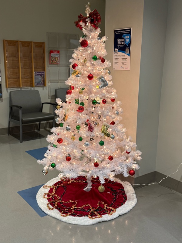Tree in the lobby of 4th Floor Infusion by the elevators. ❤️ I love white Christmas trees.