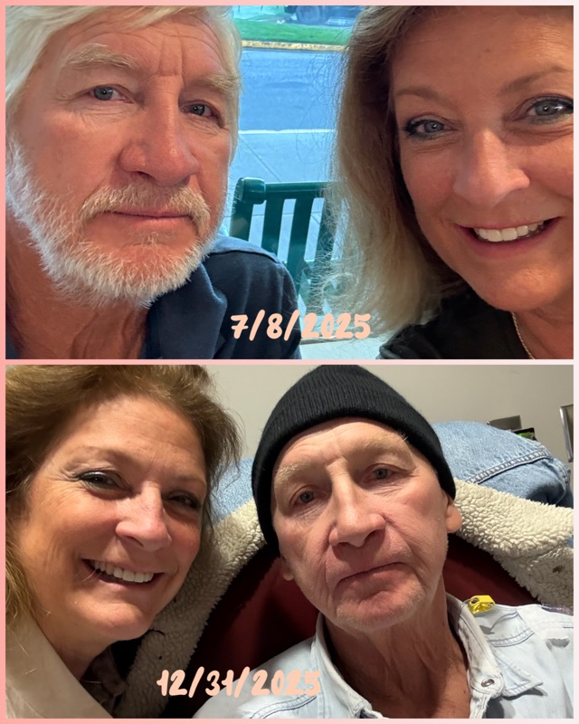 They referred him to an Ear, Nose & Throat (ENT) doctor now to follow up on the vocal cords not closing and his hoarse voice. We meet with the ENT next Monday, 1/12/2026. That is our new quest. One of the most bothersome things that happened after surgery is that Willie lost his voice and it’s very breathy and hoarse. People can’t hear him and it’s very frustrating not to be able to speak. I mean, he’s used to LOUD. Anyway, we will now aggressively seek a solution to his speech issue now that his chemo is done. The surgeon thinks it is either due to one of the following; 1) the sedation tube during surgery or 2) nerve damage that maybe one got cut during surgery with #1 being more likely due to the surgical site being much lower down. With luck we will find out and resolve his floppy vocal cord issue.
